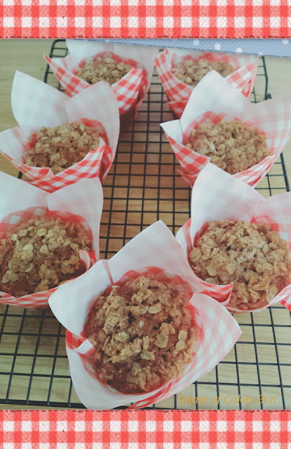 Así que para muchos estos muffins serían de plátano y avena con crumble .... me parece mejor utilizar el término correcto streusel ya que el crumble se refiere a la preparación entera (la fruta recubierta con streusel y horneada).